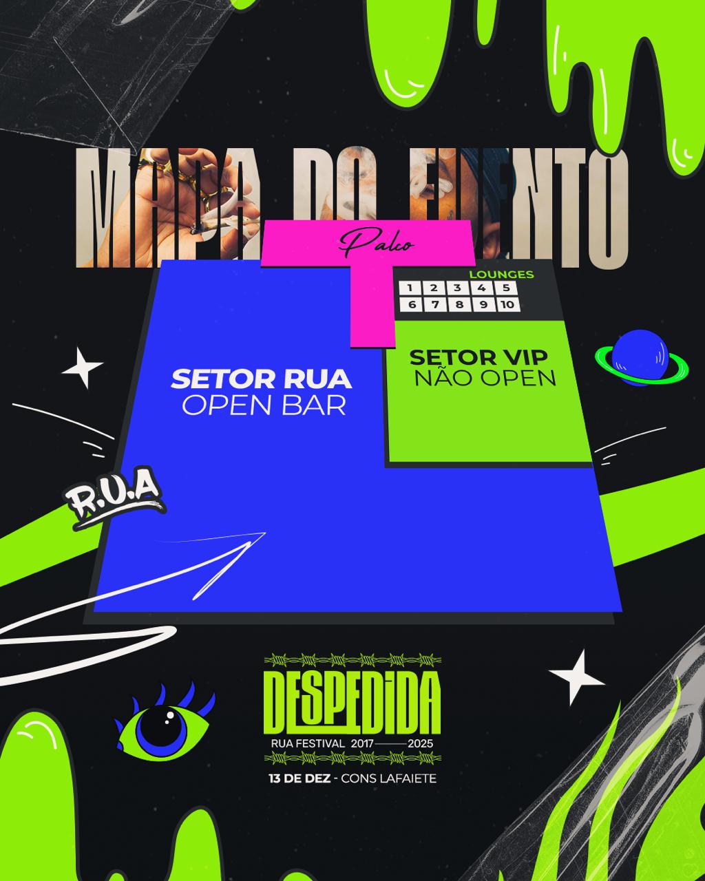 • Acesso aos setores RUA (Open BAR) e VIP (Não Open Bar).
